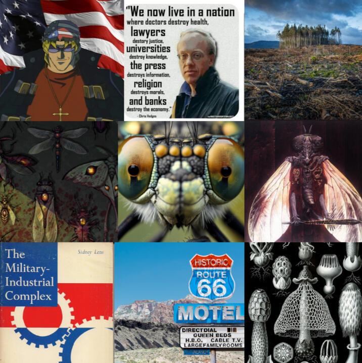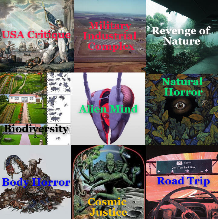Local man Nidus Nash🦋 is an ex-con and ex-trucker, displaced by AI and in despair at a personal tragedy. One day, fate chooses him. Nidus realizes that he can control the will of insects en masse. He decides to take a road trip across America, gathering confrontations and atrocities and some new friends along the way.Special Agent Evelyn Waters🛡️is a paranormal expert and the FBI’s best bet for the investigation into the “Bugman” Nidus Nash. Her and a handpicked team try to get a read on Nidus’ powers and box him in for capture. However, a mysterious entity within the U.S. government restricts the investigation and alters the strategic board with secret agents of their own. Evelyn must use every tactic available to understand Nidus and figure out what he truly wants before things escalate out of anyone’s control.Online blogger Anita Ramirez🍄 is thirteen years old and starting out her summer vacation. She lives in Lake Placid, New York and her parents love her very much. Mom is on book tour and dad is baking cookies; Anita’s good grades have earned her a summer of leisure. Mom & dad appreciate her help most in the garden, where she wields an especially green thumb. // Anita secretly conspires nightly with the realm of fungi, her very soul somehow psychically connected to America’s mushroom networks. Soon, Anita starts to detect the rise of Nidus’ swarms in the southwest — and suffers from apocalyptic dreams of a world returned to nature.WHEREVER HE MAY SWARM is a horror x action x comedy/thriller dealing with the prospect of the Holocene Extinction touching down on insects < or > humanity next. Follow Nidus Nash on a road trip across an alternate future America, where the insects are striking back against the empire.